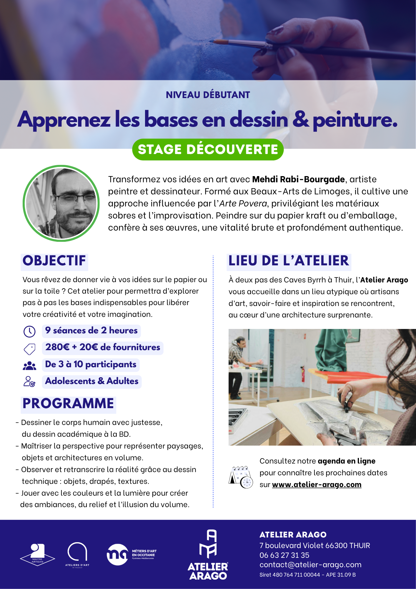 Vous rêvez de donner vie à vos idées sur le papier ou sur la toile ? Cet atelier pour permettra d’explorer pas à pas les bases indispensables pour libérer votre créativité et votre imagination.
