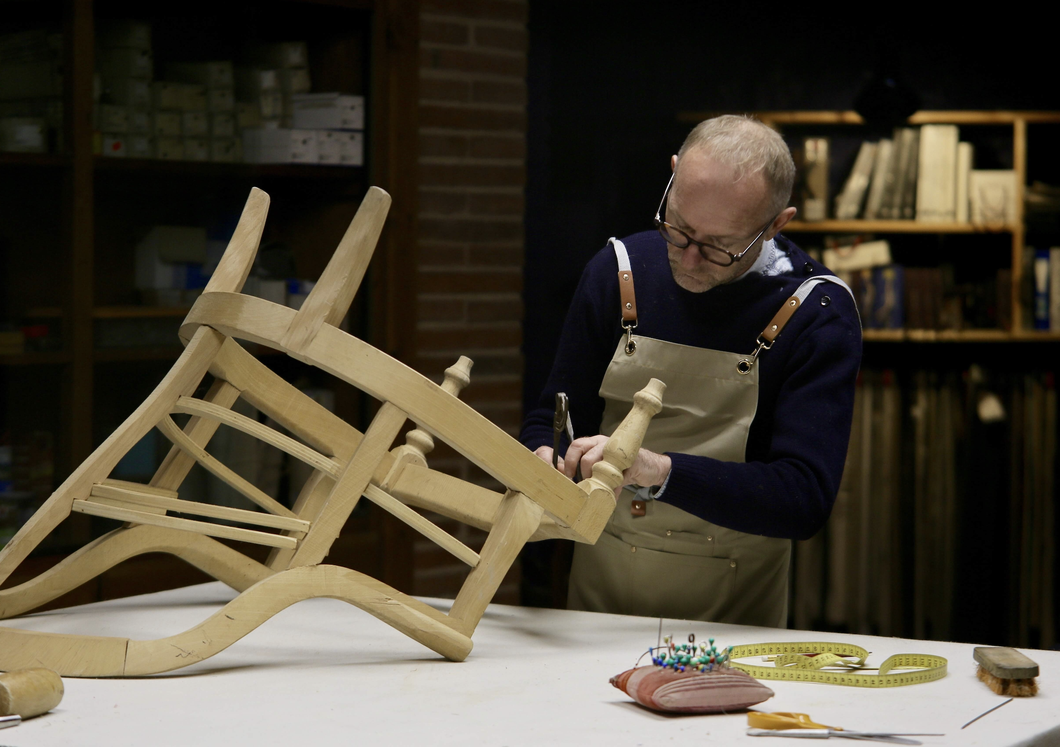 Ici se trouve l’atelier de Philippe Gally, Maître artisan tapissier décorateur et fondateur du Centre de formations sur 80 m2. Ce niveau est équipé de 4 machines à coudre industrielles (Durkopp, Pfaff) (1 simple entraînement, 1 double entraînement et 2 triple entraînement) et d’une surjeteuse, ainsi que de 2 compresseurs silencieux et de 6 agrafeuses pneumatiques. On y trouve un poste de travail petite ébénisterie et son équipement ainsi qu’une table de coupe et 4 postes de travail (établi tapissier). Un poste d’encollage (travail de la mousse) est également à votre disposition, avec tous les outils traditionnels et les petites fournitures.
